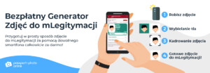 Bezpłatny Generator Zdjęć pozwoli uzyskać taką fotografię, która spełni wszystkie kryteria zdjęć do mLegitymacji lub legitymacji szkolnej. Fotografię można samodzielnie wykonać w domu. Jedyne, czego potrzebujesz to smartfon. Załaduj zdjęcie ze swojej galerii lub wykonaj nowe, a Bezpłatny Generator Zdjęć zadba o to, by fotografia była dobrze wykadrowana i przycięta. Nie musisz martwić się o tło ‒ narzędzie automatycznie je usunie. Trzeba pamiętać, by przed wykonaniem zdjęcia zdjąć czapkę lub inne nakrycie głowy.